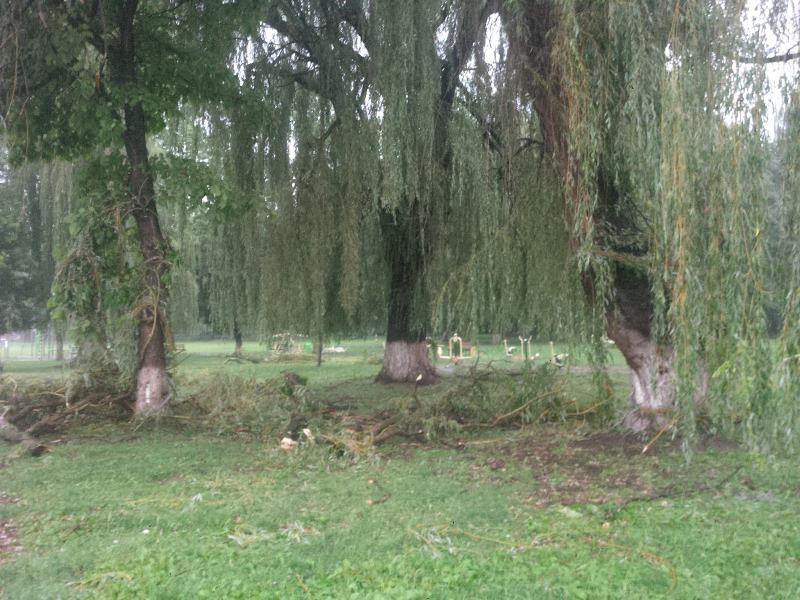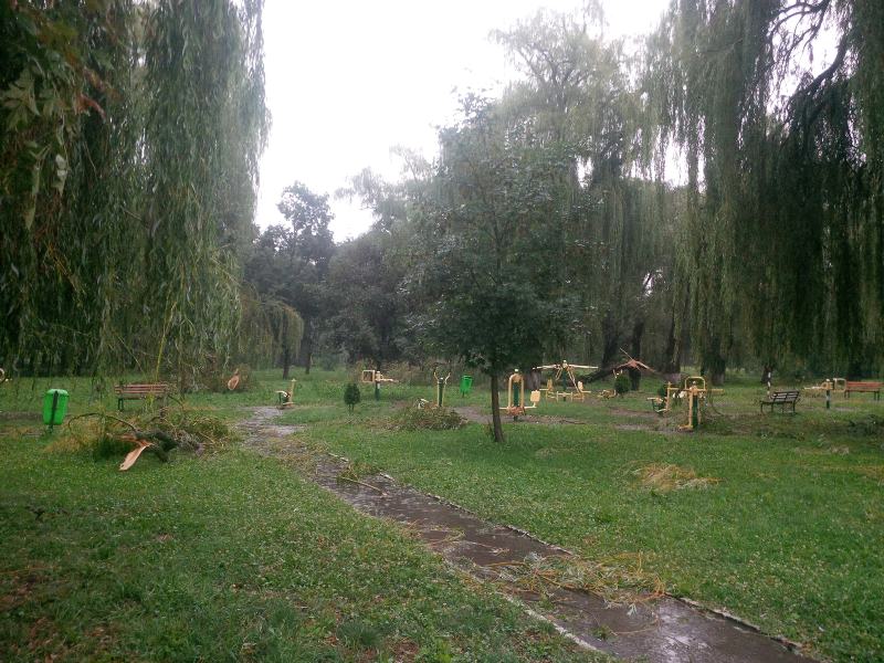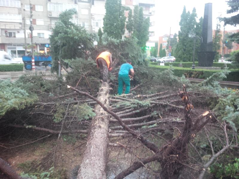 - Parcul Municipal-împrejmuirea zonei afectate pentru evitarea accidentelor şi intervenţie pentru eliberarea celor zece pomi căzuţi. S-a eliberat platforma betonată şi pista de biciclete de către S.C. Domeniul Public, Compania de Salubritate şi Serviciul Public Poliţie Locală;